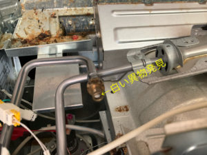 ガスをバーナーに送り込むノズルに虫の巣か卵のような物を発見。